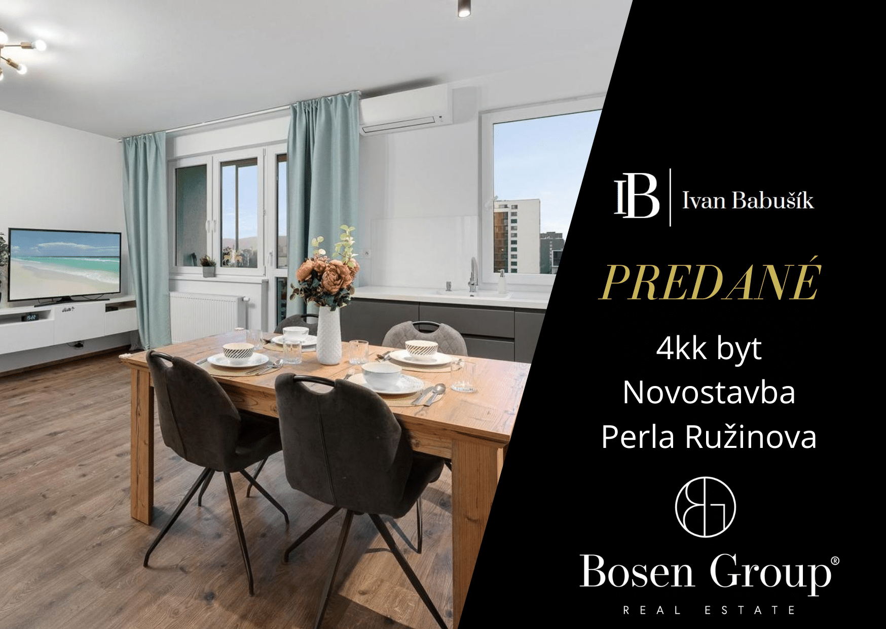 PREDANÉ: Exkluzívne Vám ponúkam na predaj 4 izbový byt na 6. poschodí novostavby Perla Ružinova. Nachádza sa na Mierovej ulici, vo vyhľadávanej časti Ružinova, s kompletnou občianskou vybavenosťou a blízkym napojením na obchvat. S bytom sa predáva garážové státie a priestranná murovaná pivničná kobka.